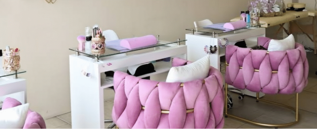 ¡Me encantó este lugar! Desde que entras, el ambiente es súper tranquilo y relajante. Las sillas de manicura son increíblemente cómodas y los colores (especialmente el rosa) le dan un toque muy femenino y chic.